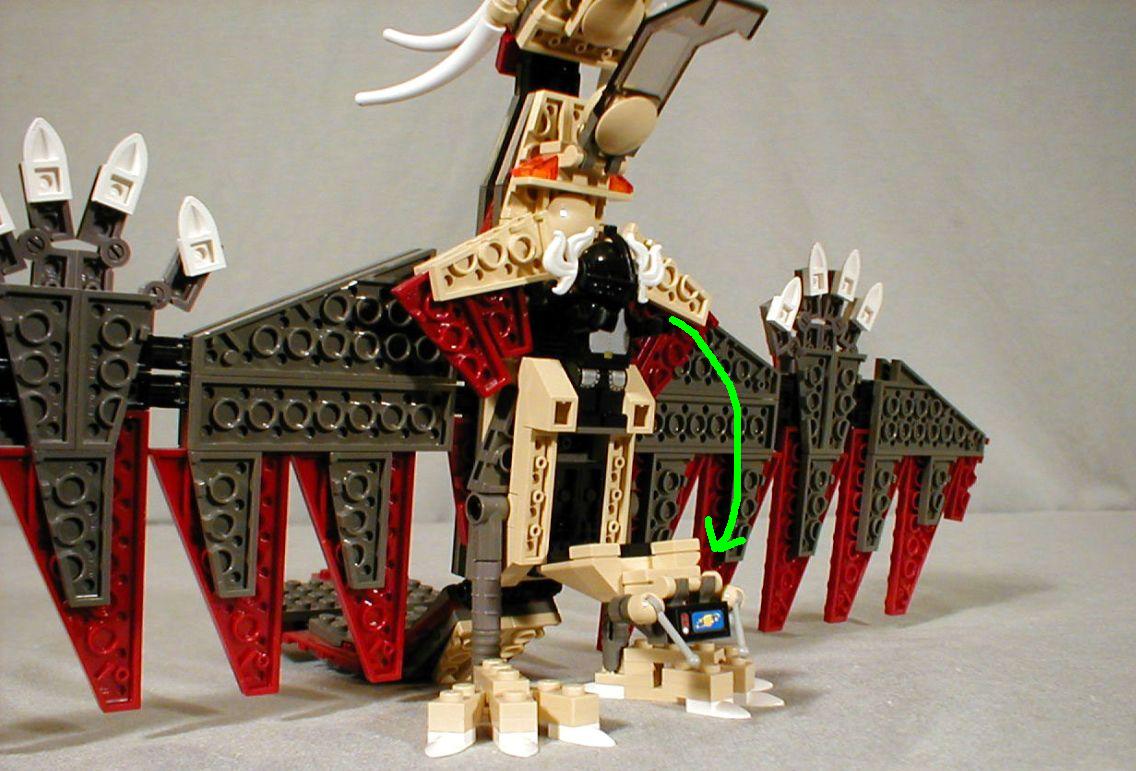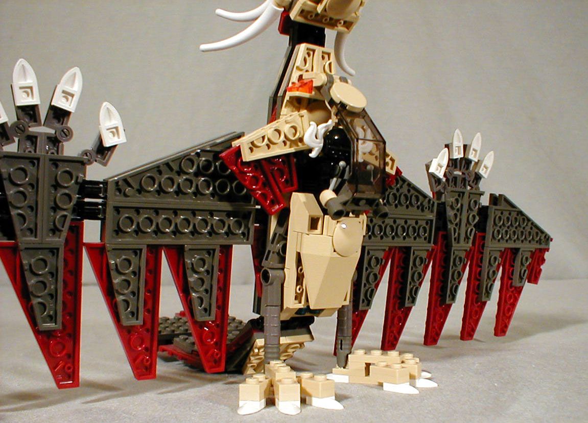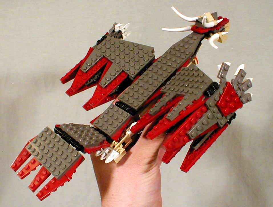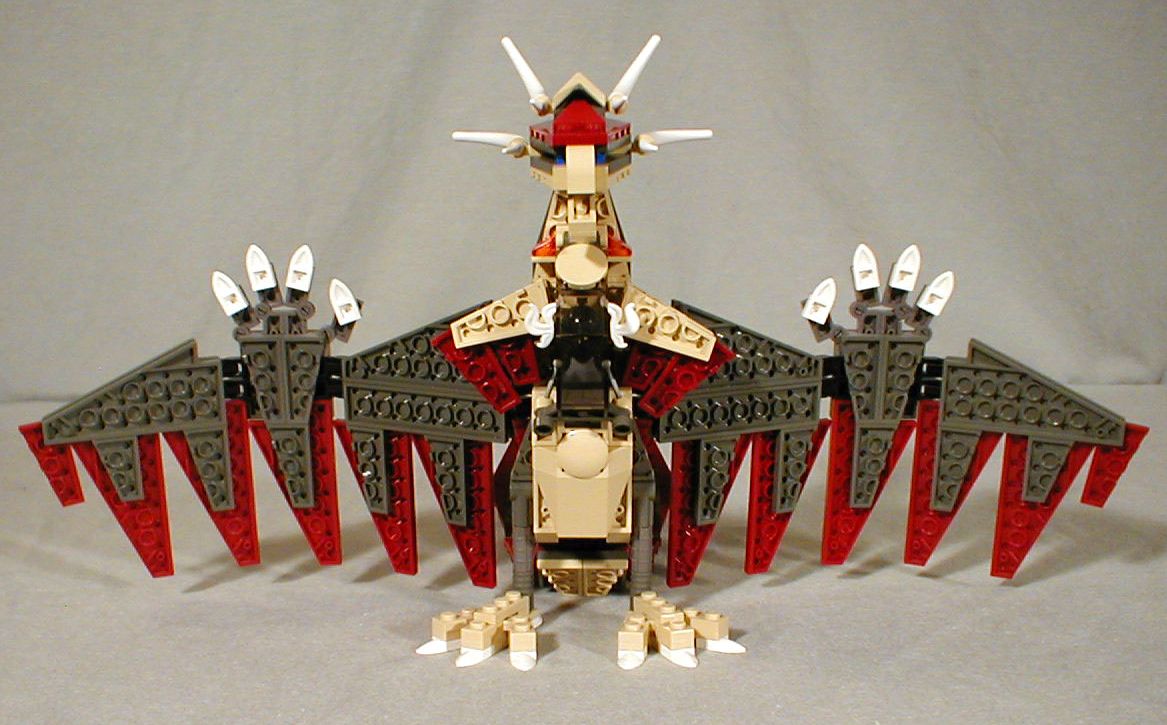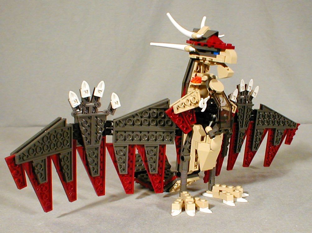 Using the new short wing plates of different sizes in both original dark grey and dark red made it possible to evoke feathers without a lot of heavy layering.
