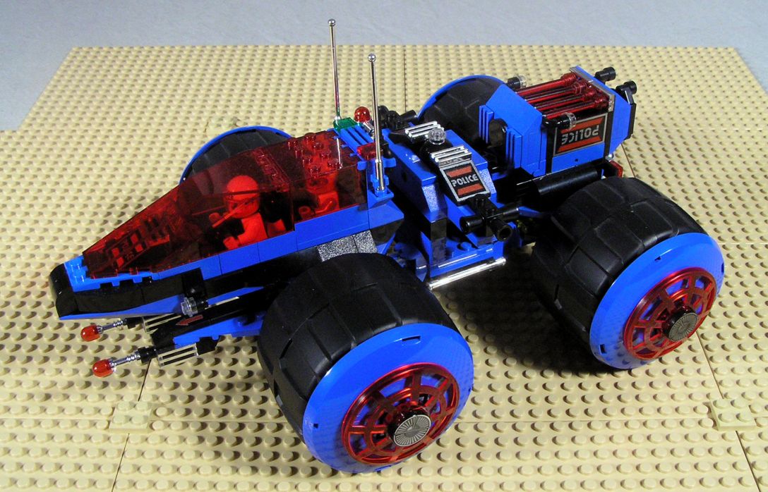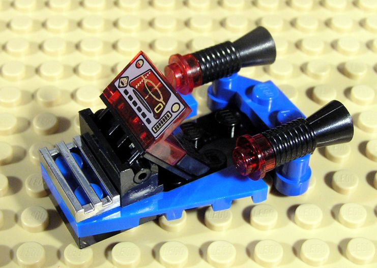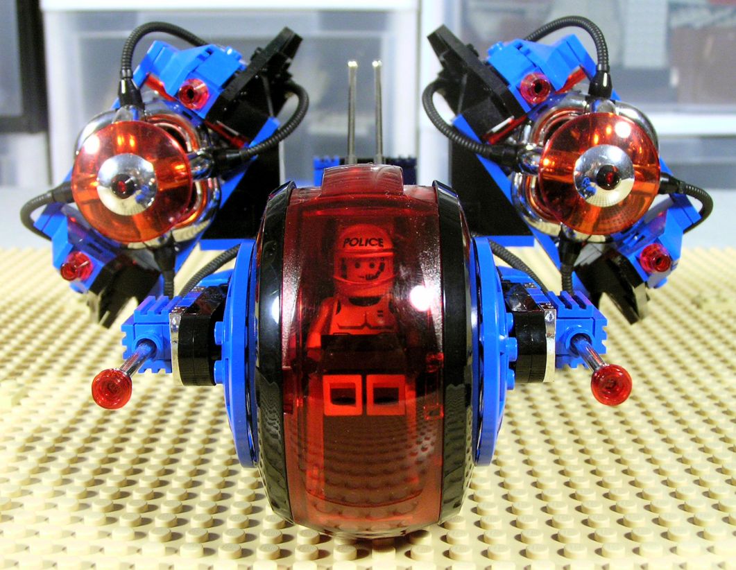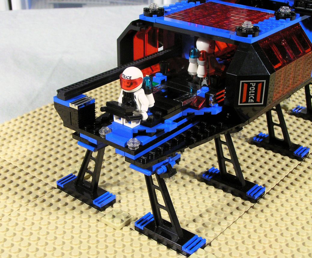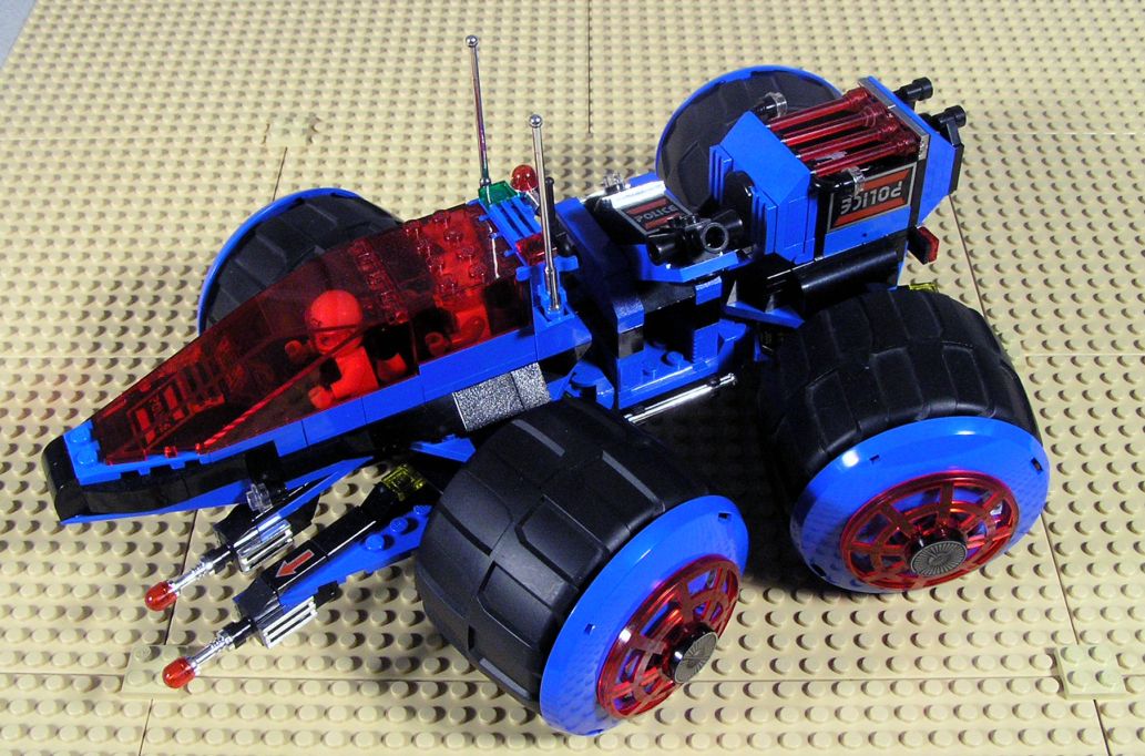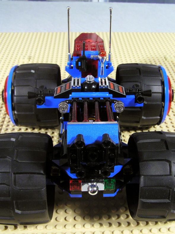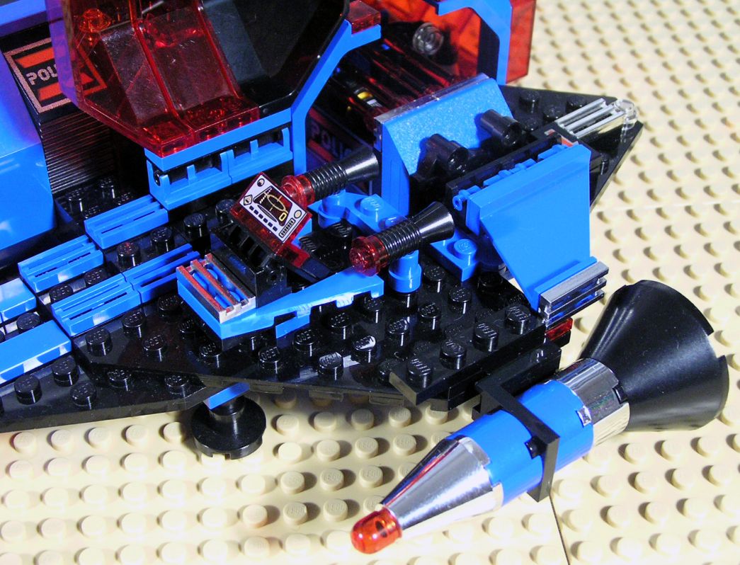 The SP-Striker is a favorite of mine for its funky design, and especially for the only light-up computer console ever to appear in any Lego set. I have a LOT of 9V stuff and made a point of squeezing in as much extra flashy blinky stuff as I could. There's a movie further down!