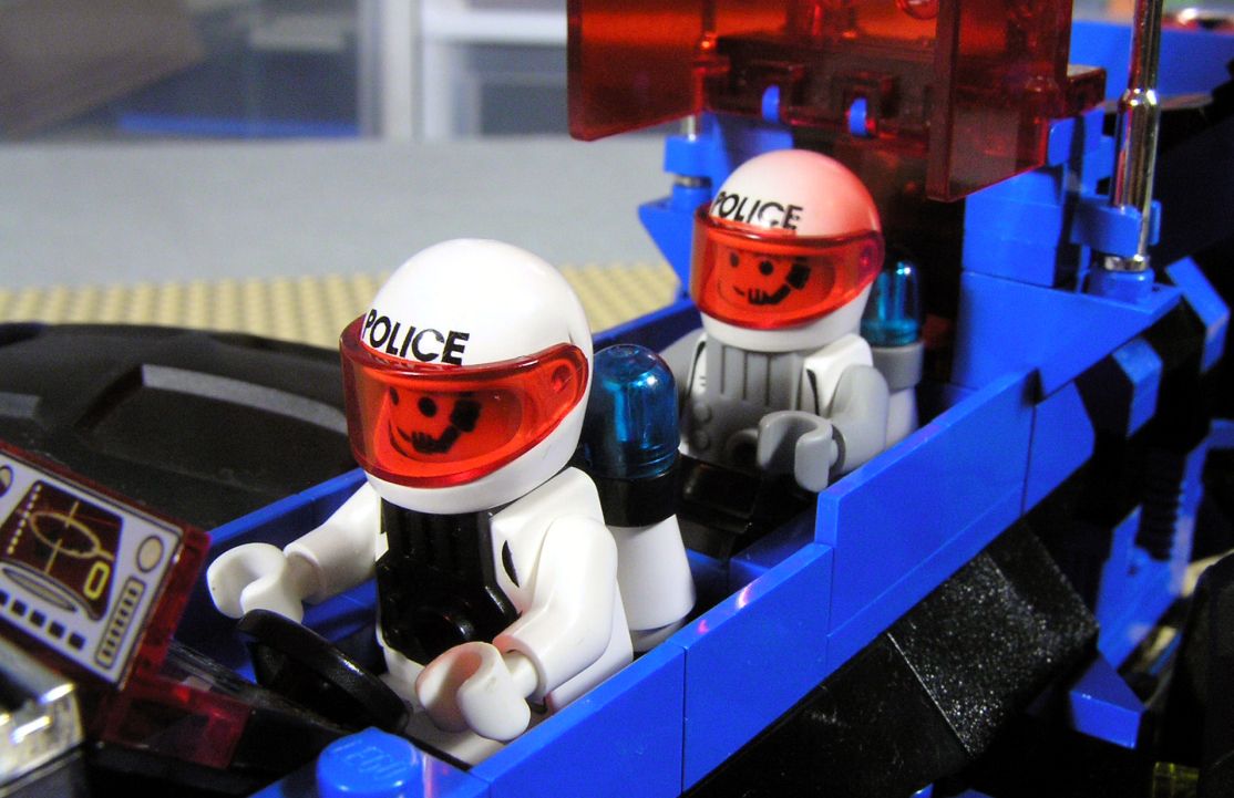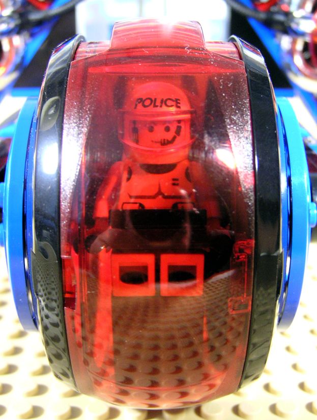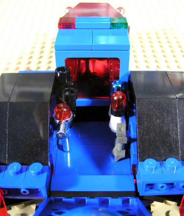 Another chrome towball in back along with another new detail, anti-collision lights which I also added to all the sets. I also substituted the trans-red 1x1 plates on the prison cell doors for trans-clear with the idea of providing extra light when locking up the bad guys. These can also illuminate the rear, so the lieutenant can spot anybody trying to sneak up from behind!
