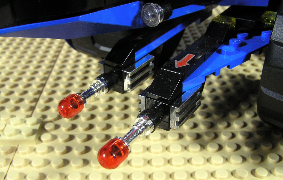 Since the SP-Striker was also lacking engines, I resolved to double up the flashing lights to the rear. The ones in front are steady, while the ones in the rear flash to give an engine-y impression.