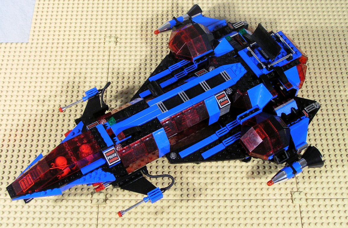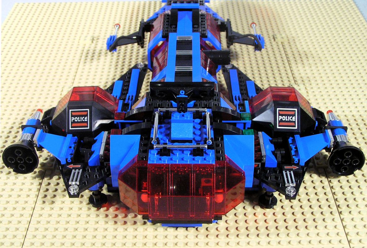 The Galactic Peace Keeper is definitely one of my favorites of the theme design-wise. I was glad to be able to add engines to it, as many SPI ships suffer a distinct lack of propulsion. Balancing the distribution of chrome and trans-red bits was challenging, and lots of time was spent tweaking their positions and numbers.